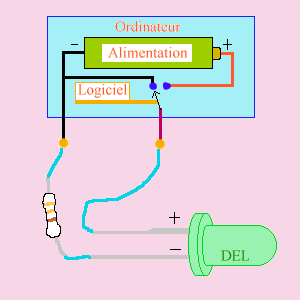 Débutons par un exemple simple: Le contrôle de l'allumage de DELs (petites lumières semblables à celles qui témoignent de l'activité de votre disque dur). DEL est une abbréviation de "diode électroluminescente".